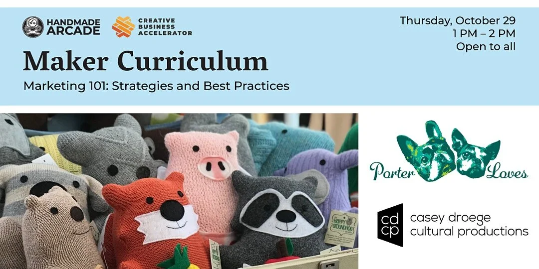 Join Casey Droege (CDCP) and Sam Laffey (Porter Loves) to address organization, marketing, and brushing up your work presentation. They will run through tips and techniques to define your voice, clean up your brand aesthetic, and create consistent digital and physical materials. See examples of what works and what doesn’t. Ask questions and leave this workshop armed and ready to set yourself up for success during this season and beyond.